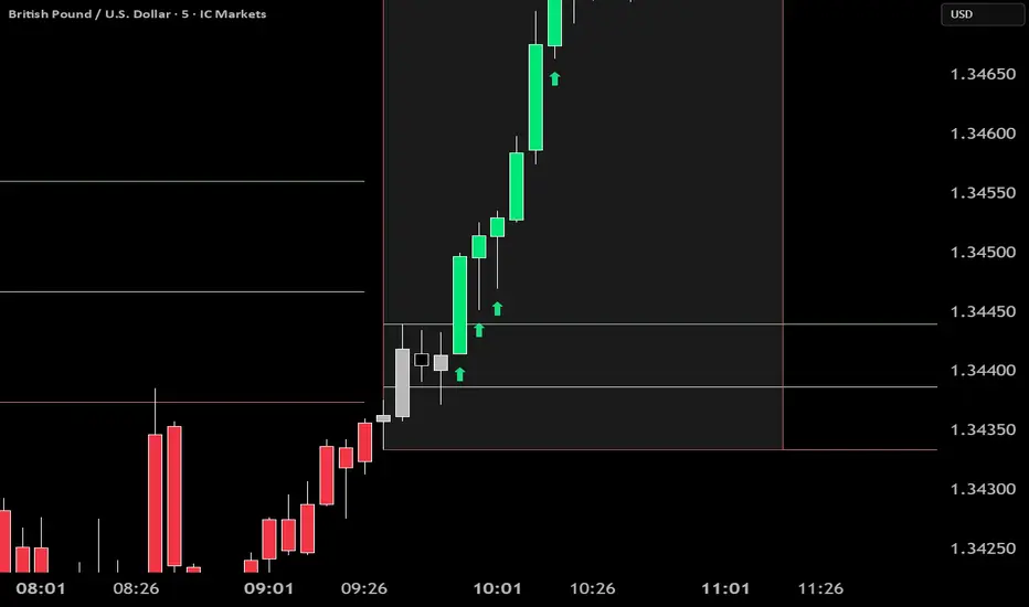 A simple strategy indicator ,works based on orb and other confluence ,to be traded at newyork open ,the session is from 9:30 - 11: 15