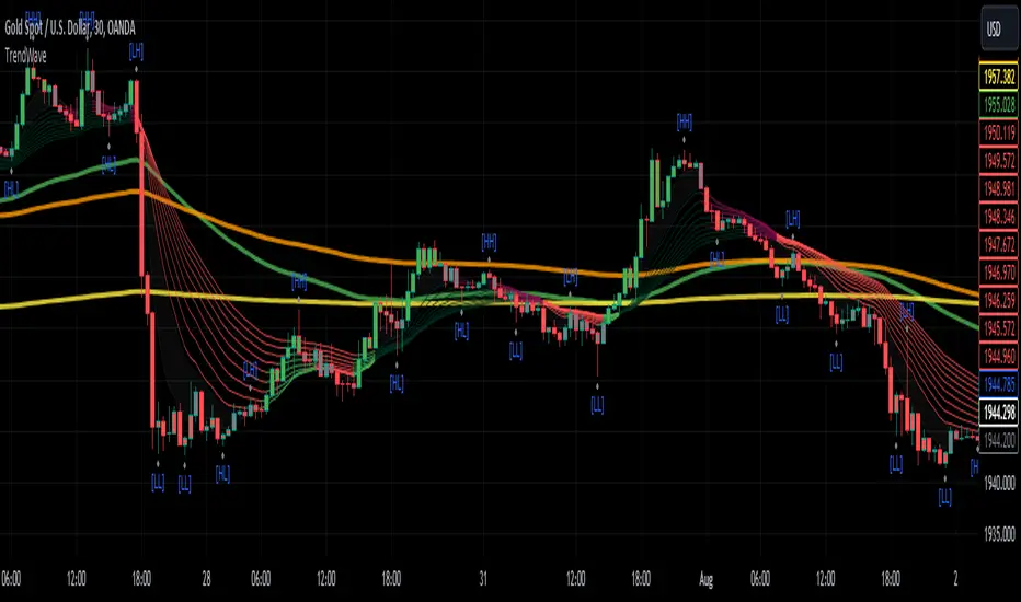 TrendWave incorporates Fast, Medium, and Slow exponential moving averages (EMA), strategically arranged to facilitate trend identification in the market.