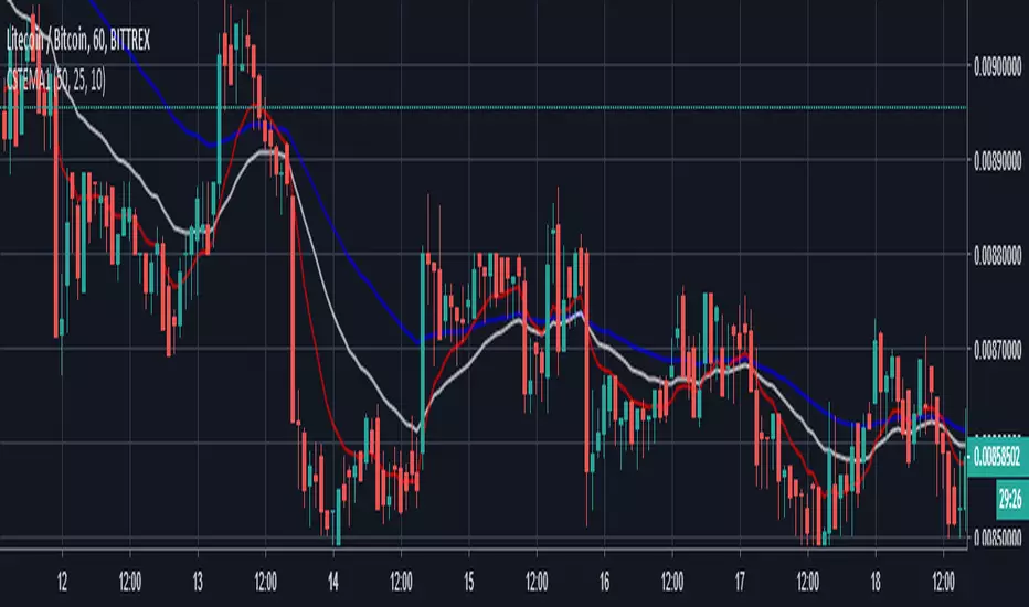 Crossing Strategy of Three Exponential Moving Averages with an up and down indicator.