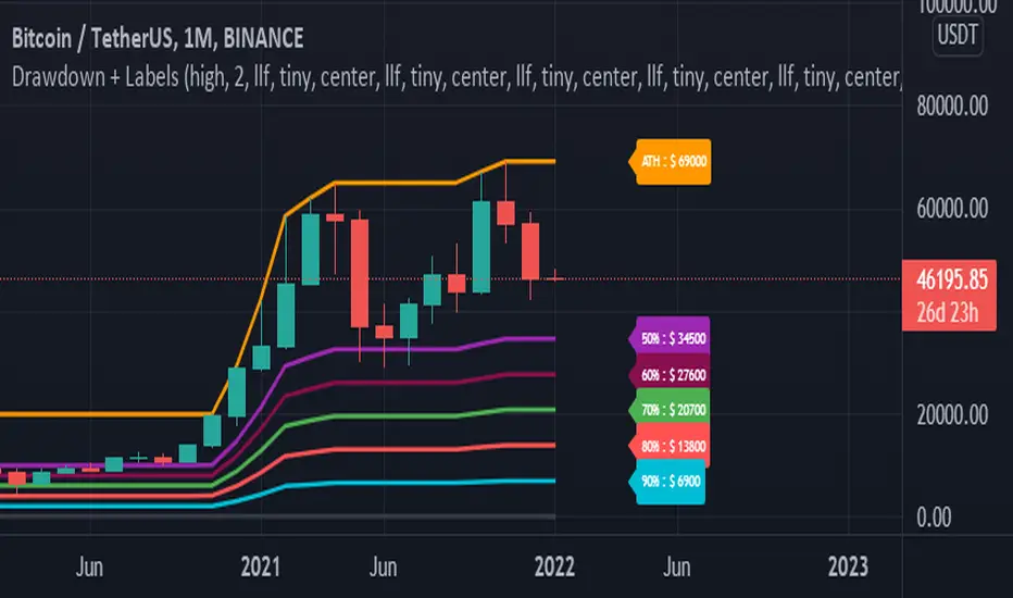 Máximo Histórico de BTC = $ 69,000 (Línea color Naranja)