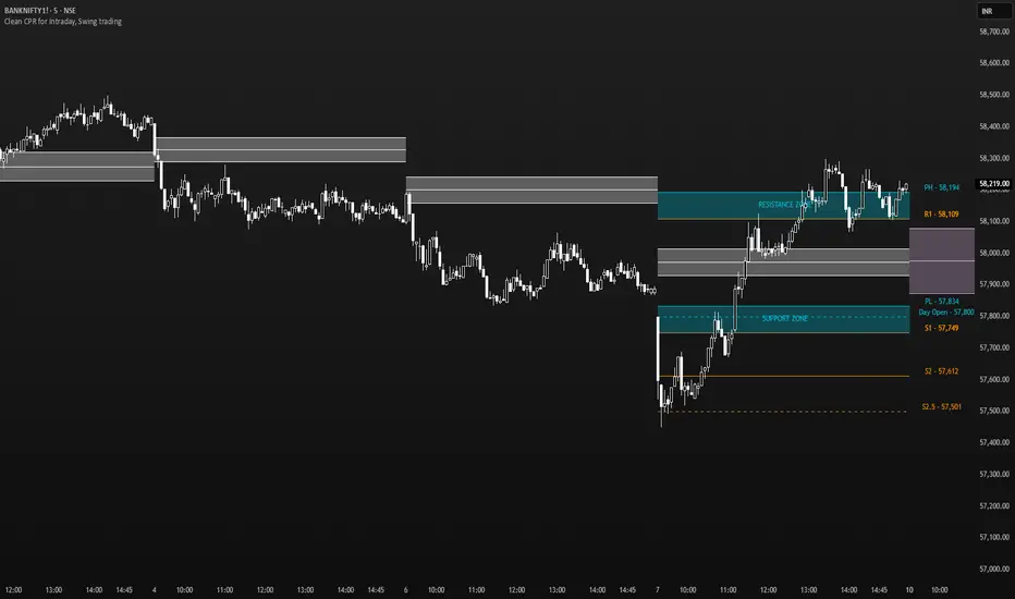 ✅ Clean CPR for Intraday & Swing Trading (NSE-Optimized)