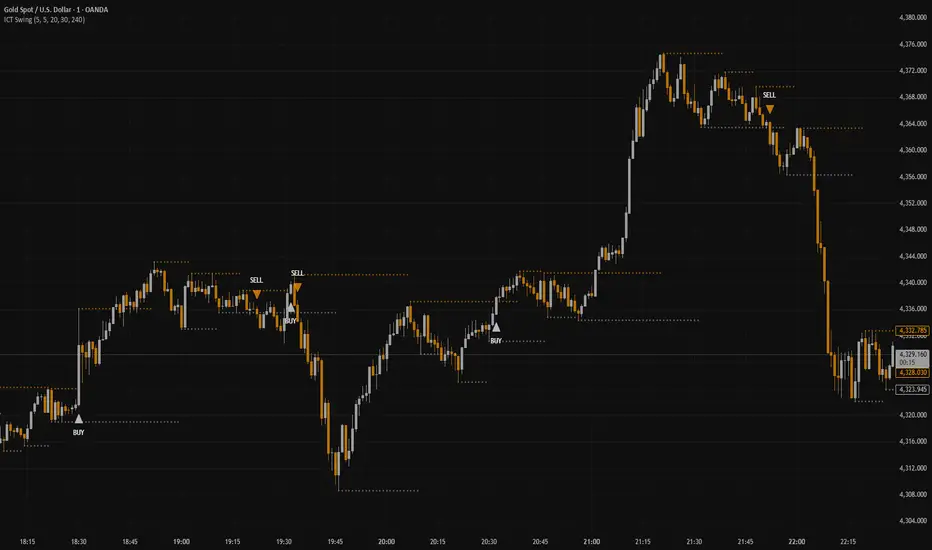 ICT Swing Trader Pro is a powerful price-action based swing trading indicator inspired by ICT and Smart Money Concepts, designed to help traders capture high-probability trend moves while holding positions for maximum pip potential.