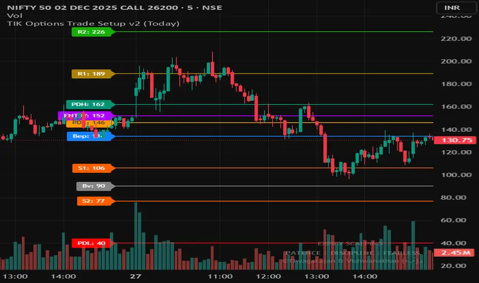 TIK Options Trade Setup v2 is a specialized options-based intraday framework designed for Expiryscalping Group Members, premium behavior analysis, and breakout confirmation using both Call (CE) and Put (PE) data.