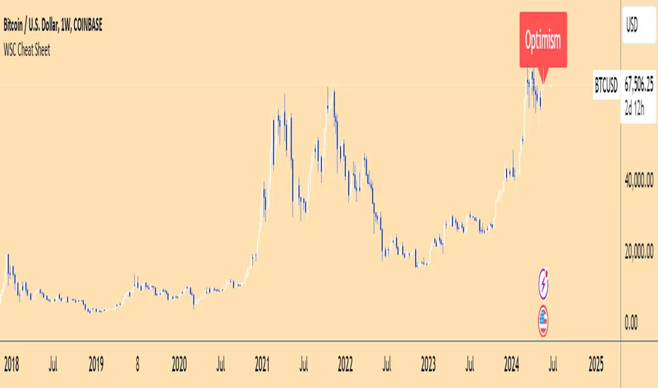 The Wall Street Cheat Sheet Indicator is a unique tool designed to help traders identify the psychological stages of the market cycle based on the well-known Wall Street Cheat Sheet. This indicator integrates moving averages and RSI to dynamically label market stages, providing clear visual cues on the chart.