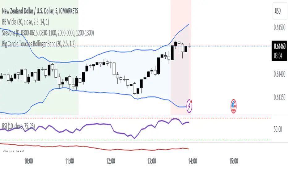 Big Candle Detection: A "big candle" is a candle that has a larger body compared to the average price movement over a period. This is determined using the Average True Range (ATR), which measures market volatility.