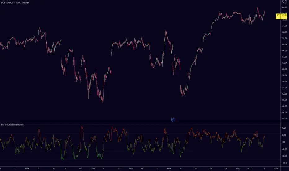 This script uses all of the sub-components of my 'Fear and Greed Index' which can be used on intraday timeframes. Most of the components of this script are based on the popular fear and greed index website and are briefly described in the code comments.