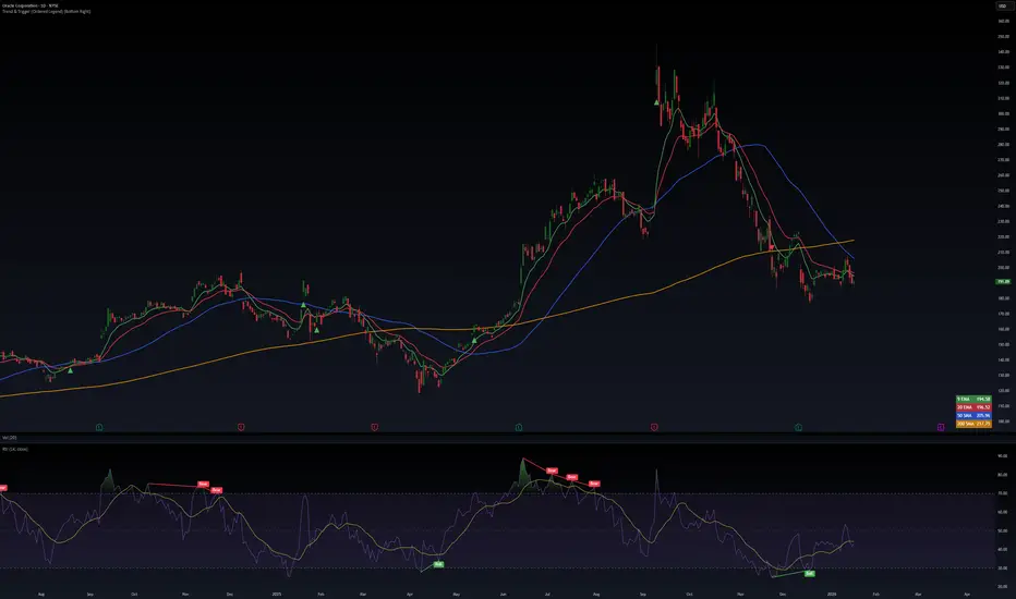 Overview This script implements a "Dual Timeframe" swing trading strategy designed for Daily charts. It separates the "Decision" (Trend) from the "Timing" (Momentum) by combining classic moving average logic found in the works of John J. Murphy and Dr. Alexander Elder.