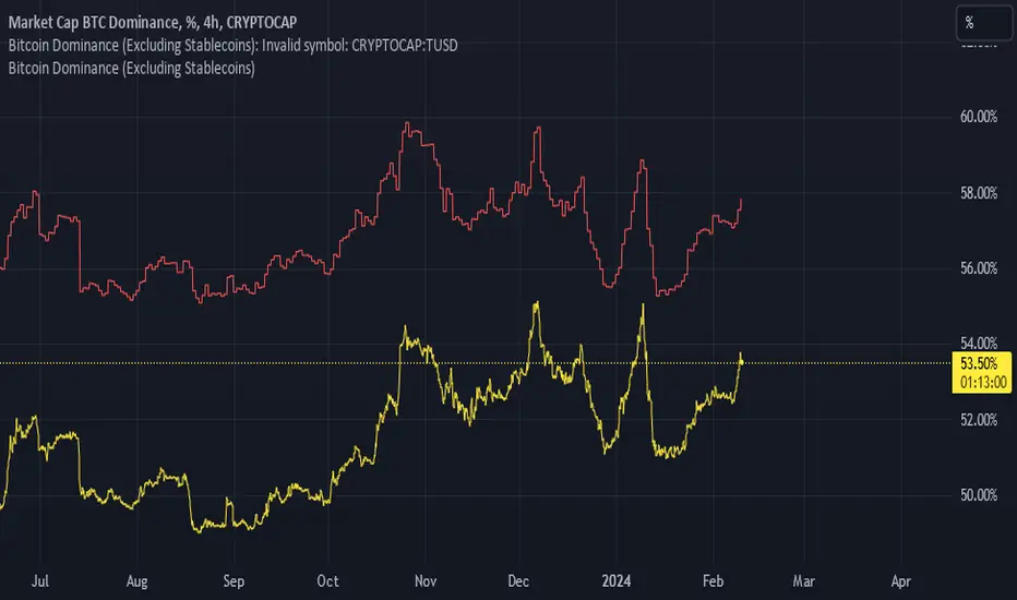 Aggiornato Bitcoin Dominance (Excluding Stablecoins)