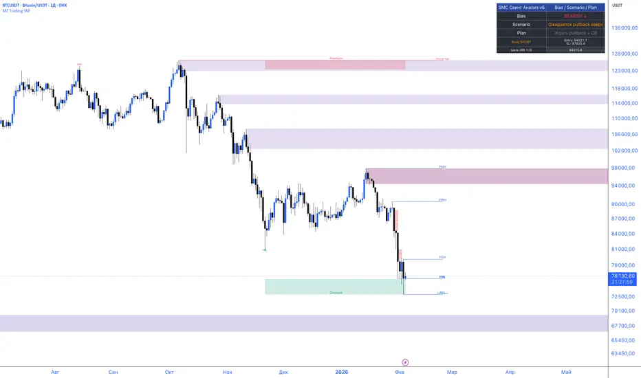 MT Trading SM is a market analysis tool based on Smart Money Concepts, designed to identify market context, probable price scenarios, and a structured trading plan — without generating direct buy or sell signals.