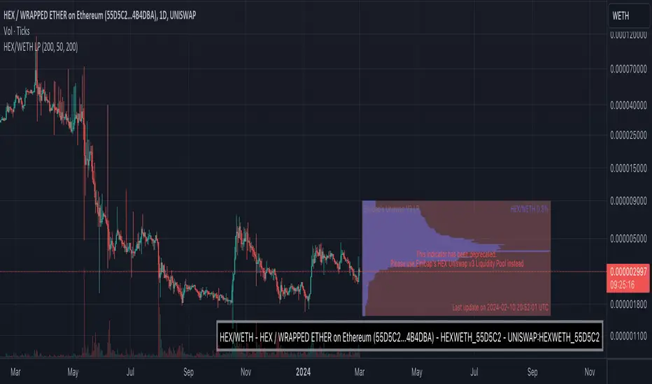 This indicator has been deprecated. Please replace it with the unified HEX LP tool:https://www.tradingview.com/script/Rv2X1Vxg-Emibap-s-HEX-Uniswap-v3-Liquidity-Pool/
