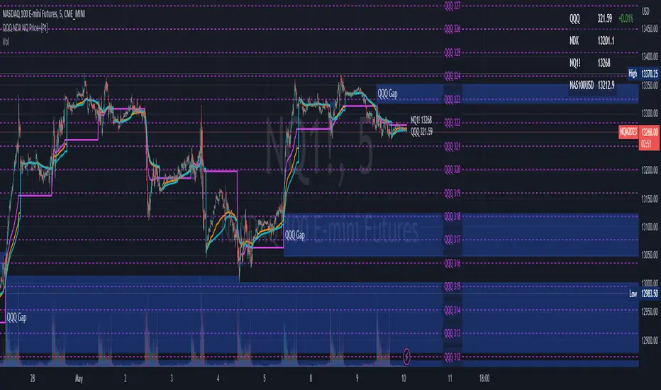 Overnight gaps from QQQ or NDX can be mapped directly onto NQ chart