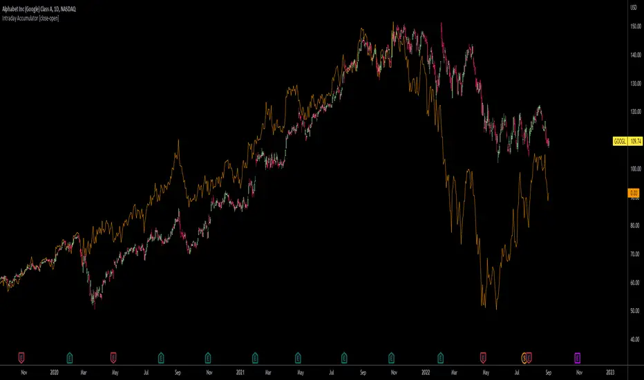 This script plots close-open cumulative from the beginning of the chart. It is made for use on equities with overnight sessions to view the intraday performance vs the candlestick chart.