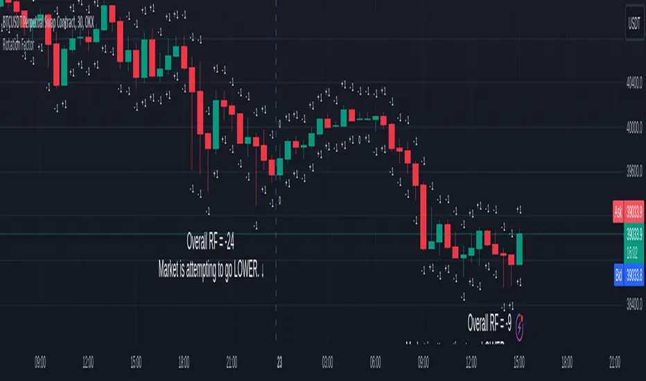 The Rotation Factor is, to quote, "by no means not an all-conclusive indication of future market direction.". It only helps determine which way the market is trying to go by objectively measuring the market's directional attempts.