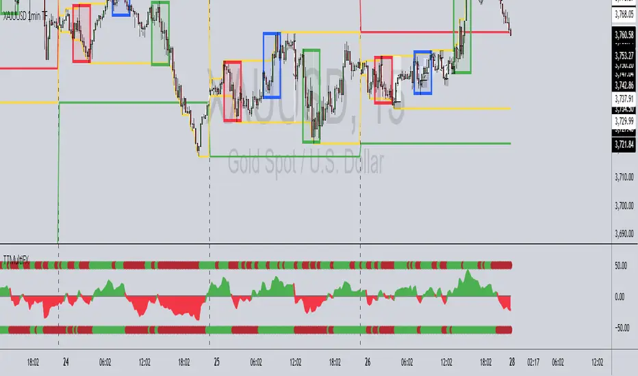 PDH - Red line PDL - Green line Current day HIGH & LOW Yellow Lines 5 Min close structure line - White.