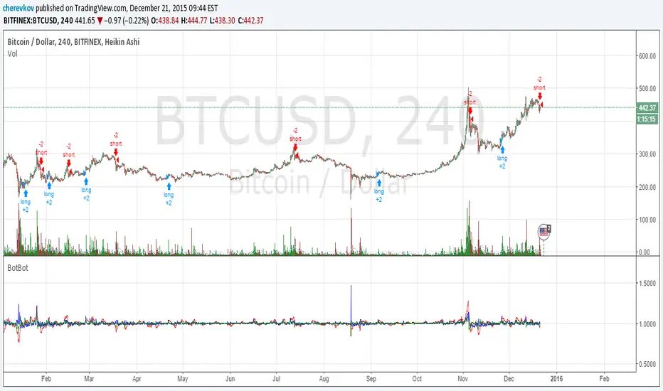 Seems to be good for direction spotting during sideways and uptrend. Works only on 4h HA candles.