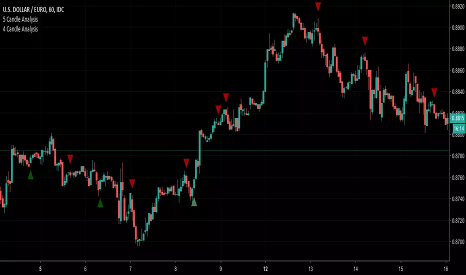 If the first 3 candles in the pattern are BULLISH and the 4th candle BEARISH engulfs the 3rd candle then a RED triangle DOWN will display ABOVE the 4th candle