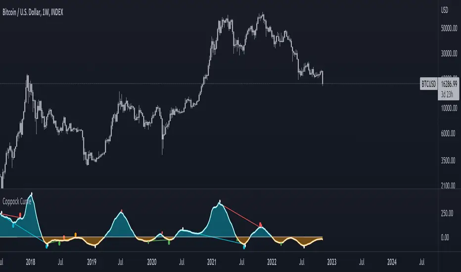 The Coppock Curve is a long-term price momentum indicator used primarily to recognize major downturns and upturns in a stock market index. It is calculated as a 10-month weighted moving average of the sum of the 14-month rate of change and the 11-month rate of change for the index. It is also known as the "Coppock Guide."