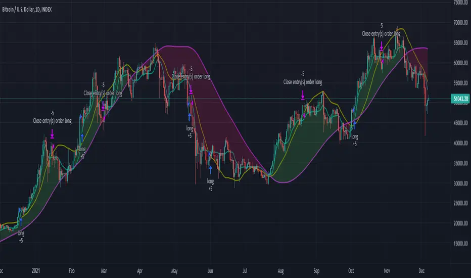Mostly winning trades by set defaults have no prominent drawdown so losing trades can be abolished with Stoploss. Would soon add Stoploss and Takeprofit options in next version. Also, if you want an alerts version of it then just comment below and would publish it later. I’ve found this strategy useful on 1D timeframe with described default settings but multiple Mas selections can be explored further.