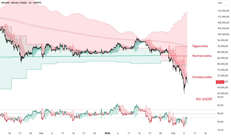 Filtered Ichimoku Cloud: Only relevant movements are highlighted, while flat and insignificant phases are hidden. This reduces visual noise and makes important trend changes easier to spot.