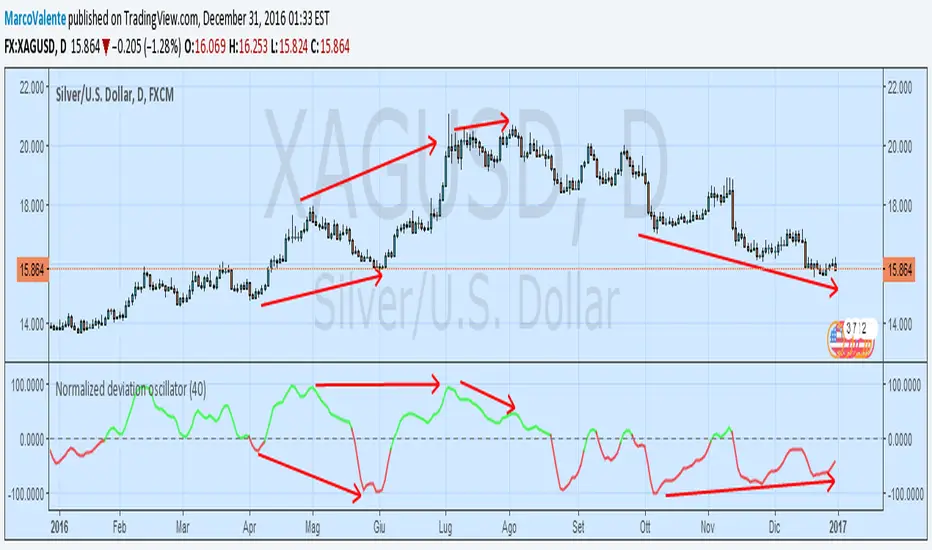 Oscillator using the difference from the price and its EMA compared to its highest and lowest value. Good on find divergence.