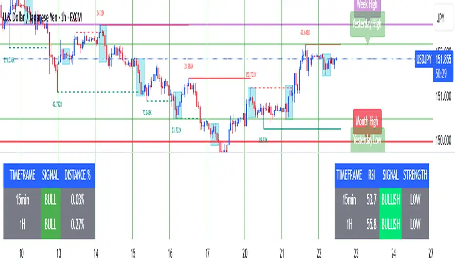 This is essentially an entire trading analysis workstation condensed into one indicator that gives you institutional-grade multi-timeframe analysis in a clean, actionable format