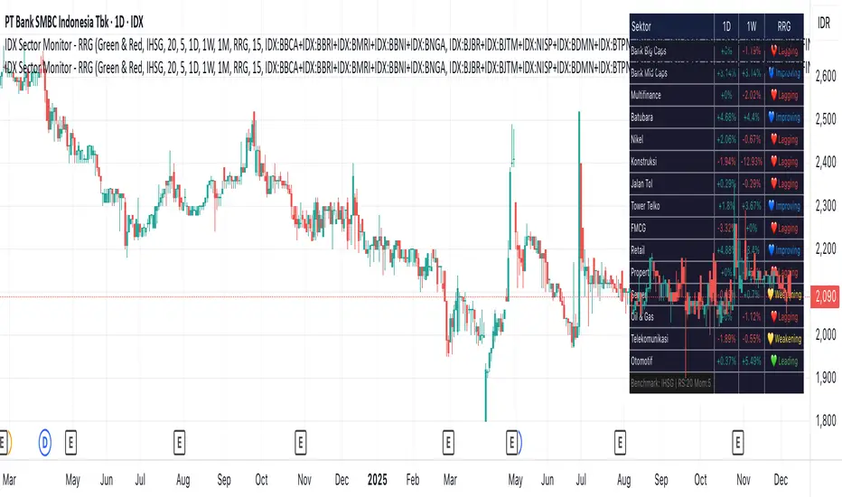 // Track Indonesian stock sectors with Relative Rotation Graph (RRG) analysis.