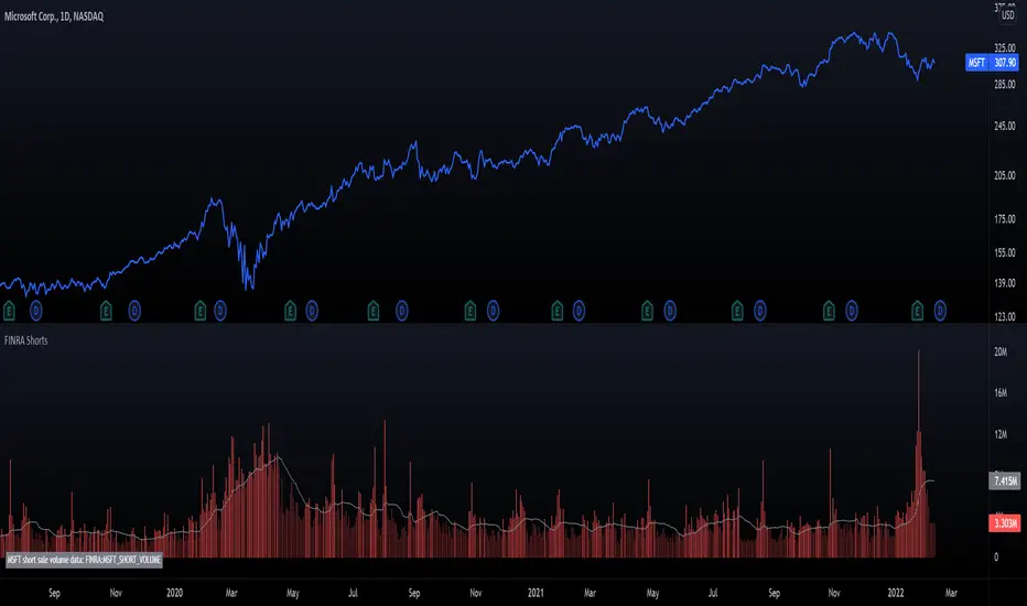 This indicator displays the Daily Short Sale Volume data reported by FINRA for US Stocks markets, namely NASDAQ, NYSE and NYSE ARCA.