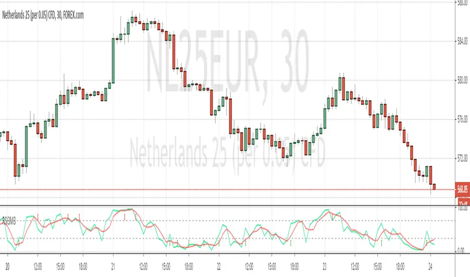 The RSI3M3 is a 3-bar RSI smoothed with a 3-bar moving average.