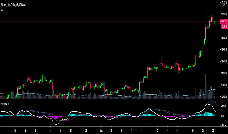This MACD shows both the standard histogram, as well as MACD and Signal line but on top of it has a MACD Leader implemented.