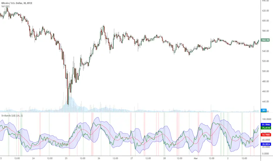 Indicator allows choosing either MFI or RSI and draws a BB over it to identify oversold / overbought conditions.