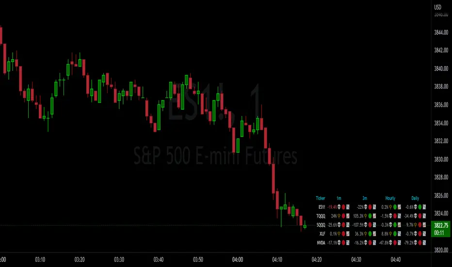 In summary, 🔱🟩 is perfect confirmation for CALL entry, but even better when at minimum the 1m and 3m care confirmed. Similarly, 💀🟥 confirms an upcoming entry for a PUT. Bear in mind, this indicator is not meant for any financial advice and is only meant to present market direction, or at least a few specific tickers' direction with the market.