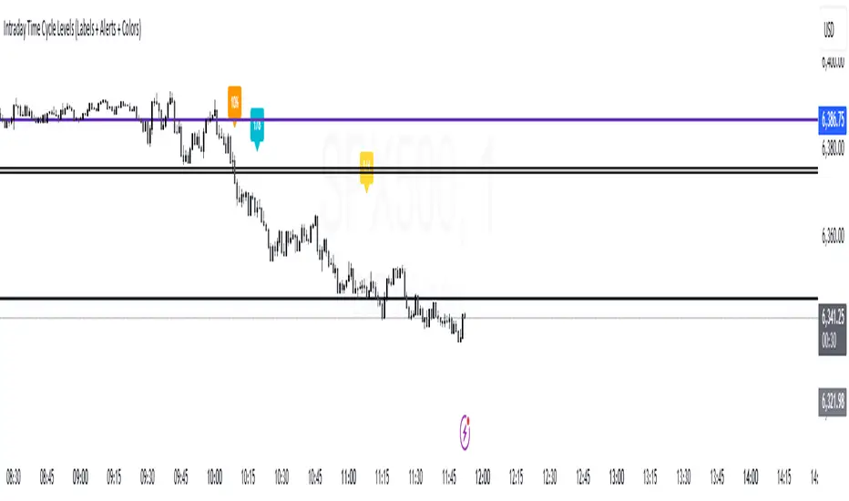 Intraday Time Cycle Levels (Labels + Alerts + Colors)
