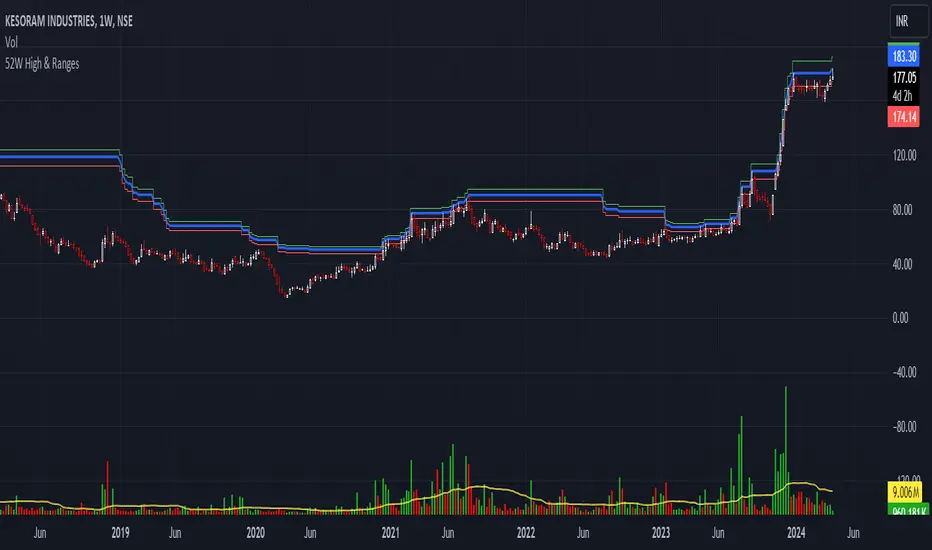The "Customizable 52 Week High & Range Bands" indicator is a novel tool designed for traders and investors who seek to gain insights into an asset's long-term performance while simultaneously identifying potential support and resistance levels through customizable percentage-based range bands.