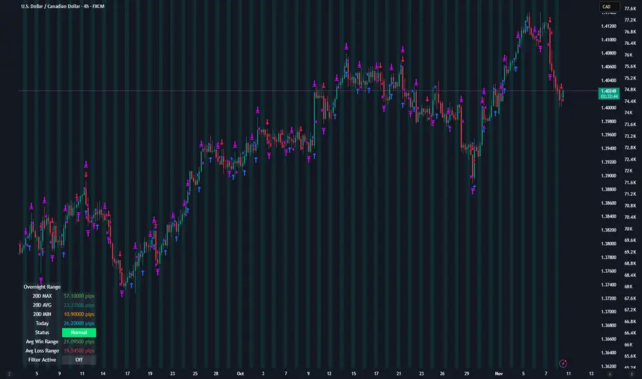 - Average Winning Range: Average size of the overnight range on profitable days.