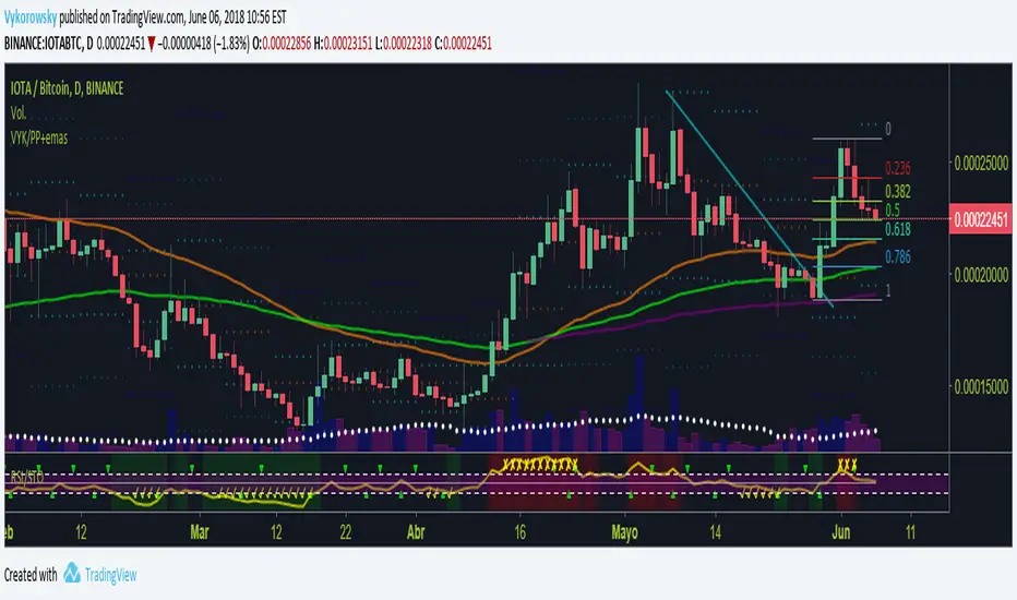 RSI with values 60-40 Displays a check when it crosses below 40 and an X when it is above 60 (Team DM System) Stochastic displays purchase / sale zones.