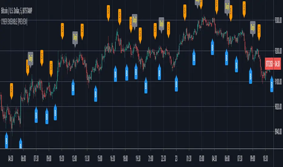 CYBER ENSEMBLE is a sophisticated signalling script base on the interplay of an ensemble of optimized indicators and market state filters.