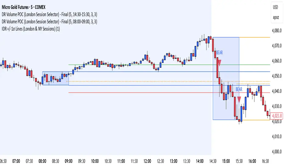 fixed volume profil on the DR range, buy and sell signals for crossing or rejecting POC