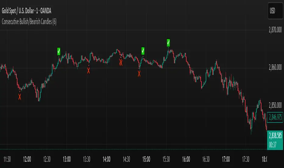 The user can set a custom number of consecutive bullish or bearish candles (default: 5).