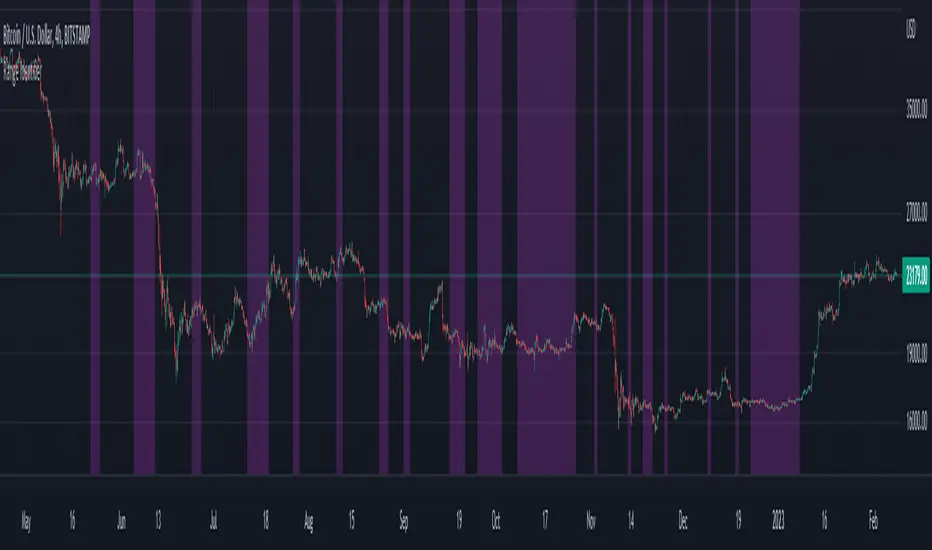 It uses the Donchian Channels but with hlc3 data as opposed to high/lows - and identifies periods in which the baseline is static, or when the channel upper & lower are contracting.