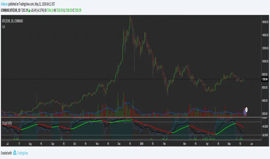 This oscillator is based on the williams%R combined with EMA's for better signals. it shows momentum and ob/os signals and indicates market cycles.