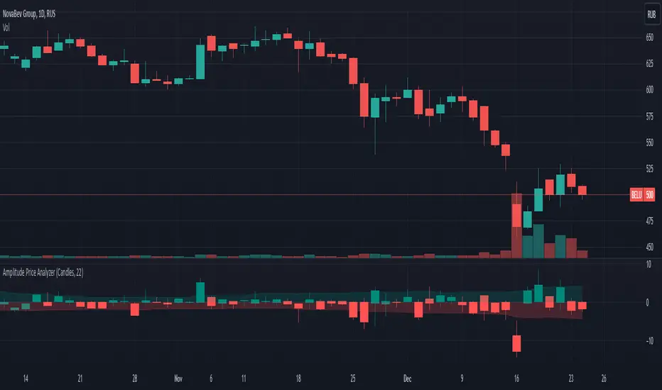 Этот скрипт отображает значения цен в процентах (открытие, высокие, низкие и закрытие) текущих баров относительно закрытия предыдущего бара. Это помогает визуализировать амплитуду движений цен. В зависимости от выбора пользователя, отображение может быть в виде свечей или баров.