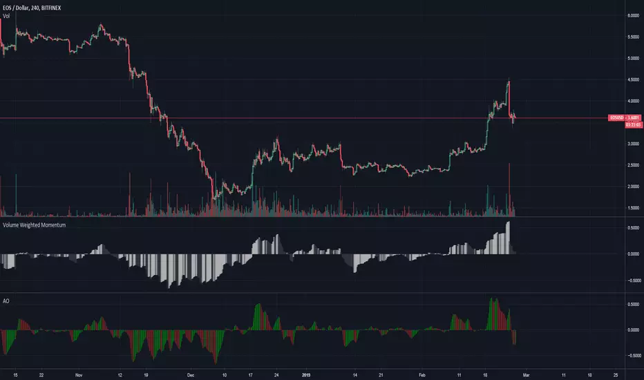 Similar to the awesome oscilator but uses volume weighted averages instead of simple moving averages. This should help to build a more accurate picture over the AO version
