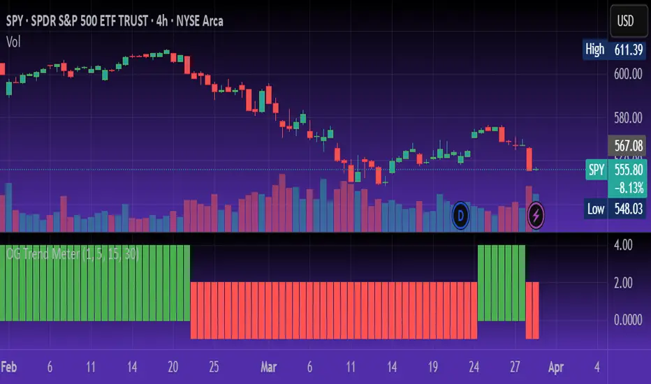 The OG Trend Meter gives you a visual snapshot of multiple timeframe trends in one glance. Built for speed and clarity, it helps confirm direction across key intraday timeframes: 1m, 5m, 15m, and 30m.