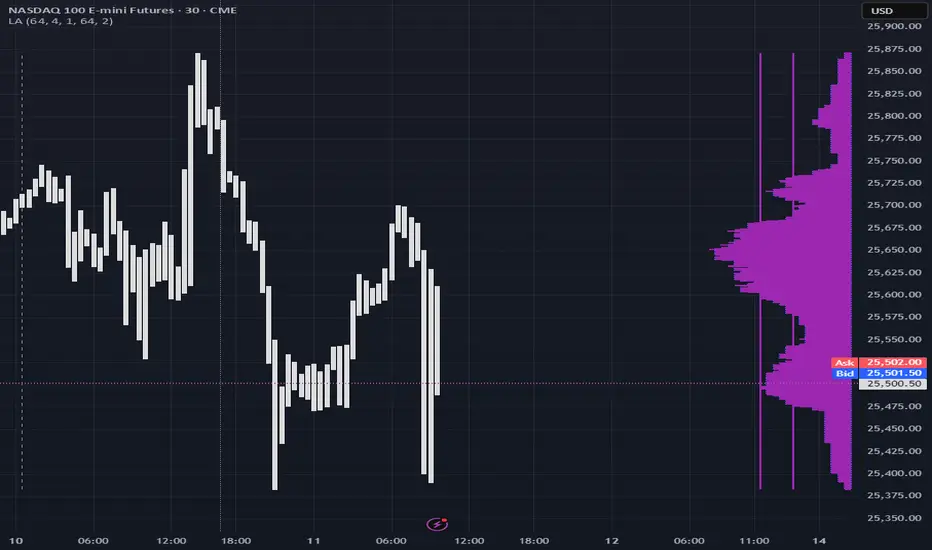- where profile rows don’t exceed the right purple line, these prices are considered LVN. Potential thin/lack of liquidity is expected there.