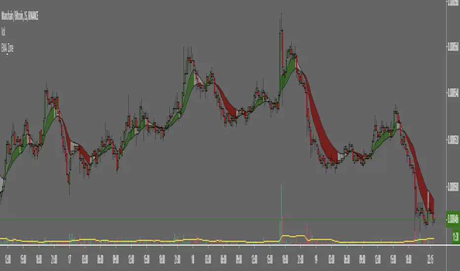 Indicator to fill the ZONE between two EMAs (9 and 21 is the default)