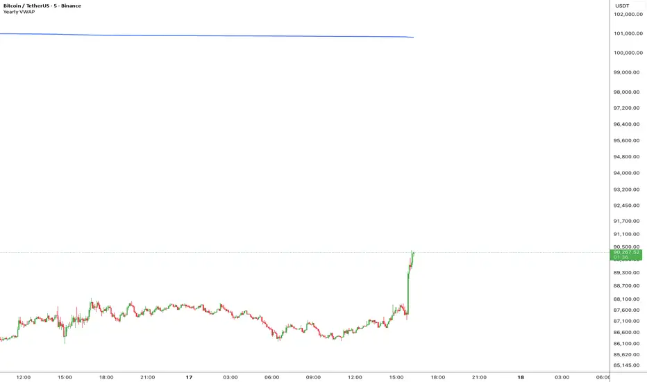 In this update, I’ve enhanced the Yearly VWAP script so that it now works reliably on all timeframes starting from the 5-minute chart and higher. Previously, the monthly reset logic caused inconsistencies on lower timeframes. Now, the indicator uses a yearly reset based on the calendar year, ensuring stable and accurate VWAP calculations without issues.