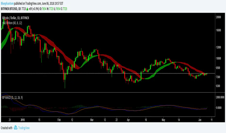 This is a Heikin - Ashi Smoothed Trend Ribbon.
