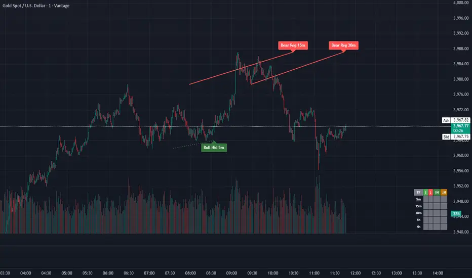 Each timeframe is independent, so divergences are correctly detected even if higher or lower TFs don’t show anything yet.