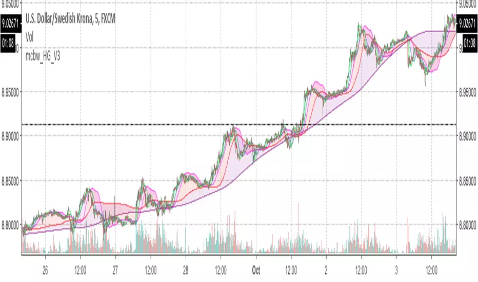 1) It follows the price better: In the inputs window there is now a box called “Responsiveness”, it can have values from 0 to 5. At 0 Version 3 looks a lot like V2. When you turn up the responsiveness the lines follow closer when they should, and repel themselves when they should be distant. Unfortunately the lines are no longer as smooth, but it isn’t much of a problem. When you turn this up the lines can generate losses if you blindly use the crossover, this is because the slopes of these lines now have more meaning as they focus on the trend, and not how price moves right around it. This can also give very powerful signals if all 5 lines crossover in the same place. Mess with it.