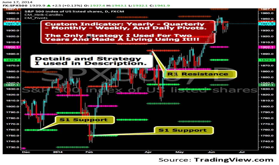 Custom Pivots Indicator - Plots Yearly, Quarterly, Monthly, Weekly, and Daily Levels.
